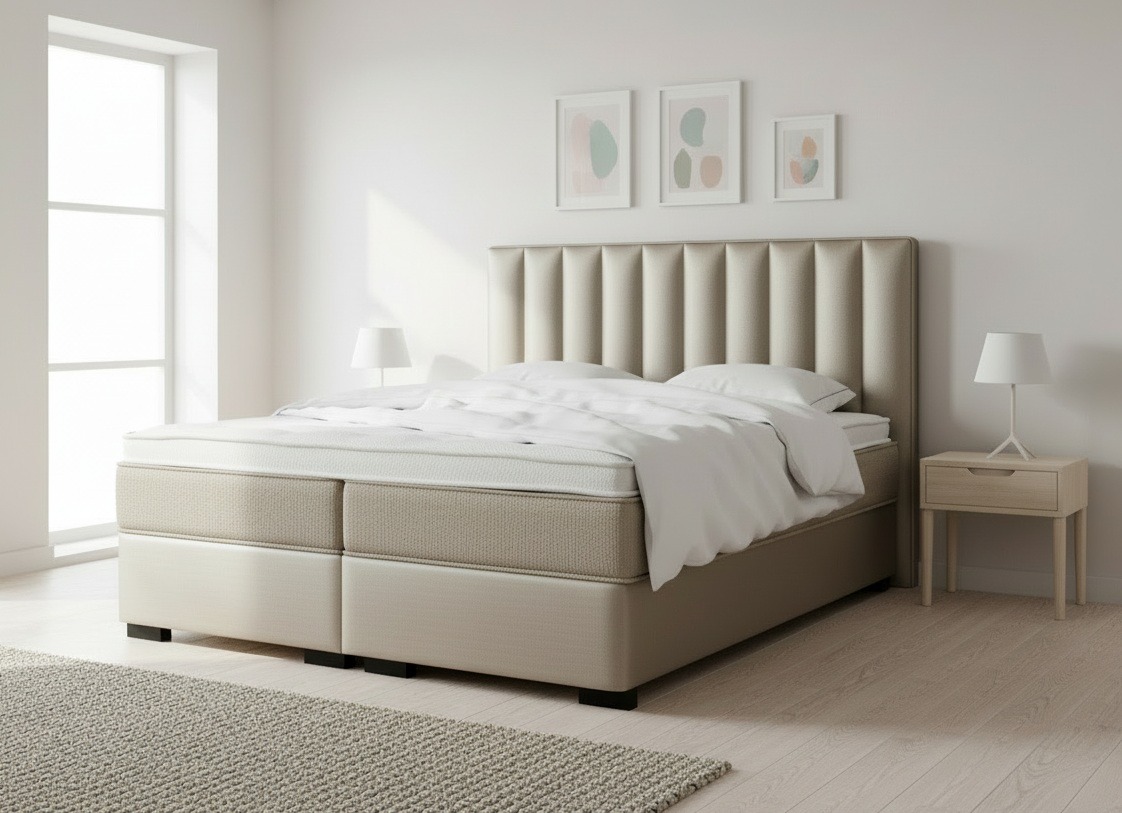 De vormgeving en afwerking van de boxspring zorgt voor een luxe uitstraling