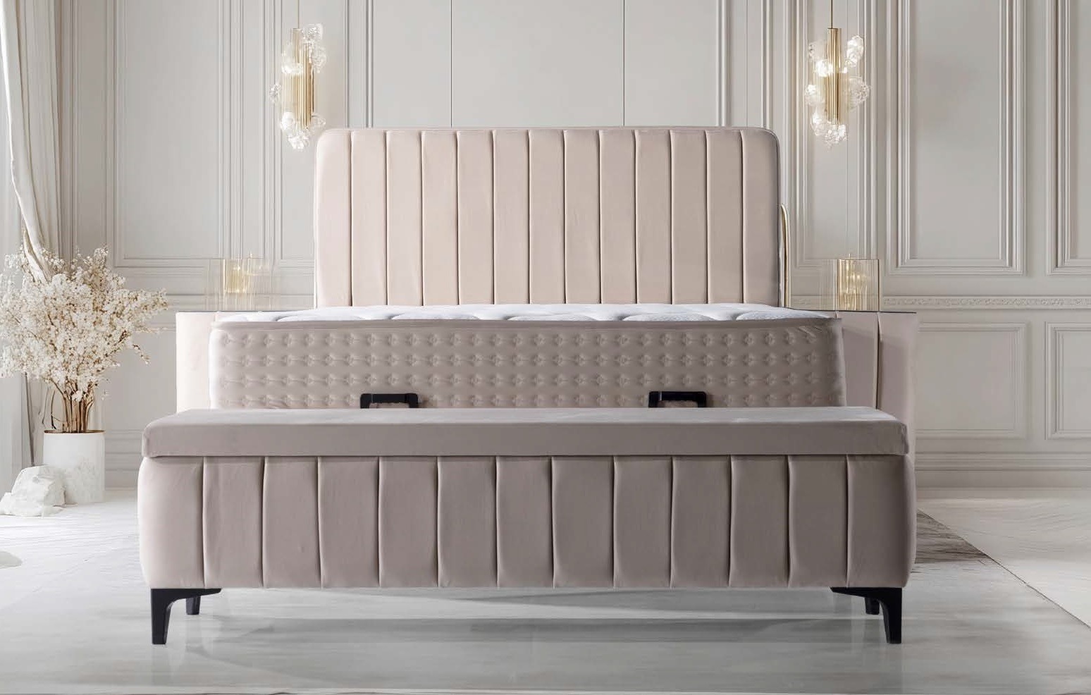 Het gestoffeerde opbergbed Dream bestaat uit een design hoofdbord prachtige verticale vlakken