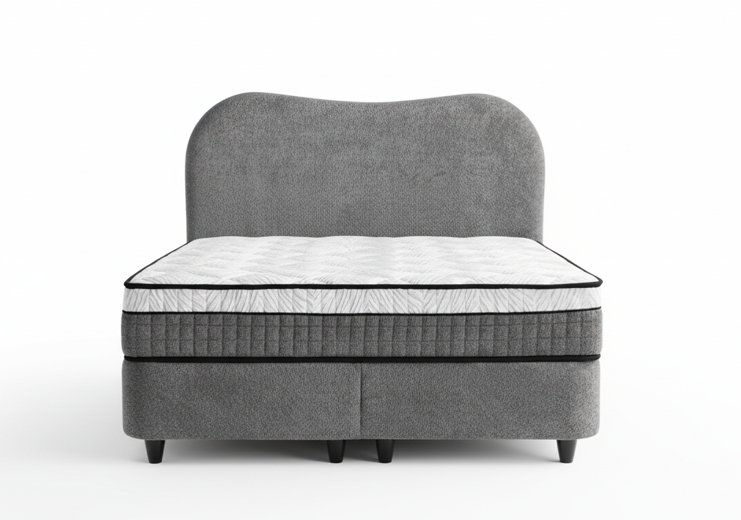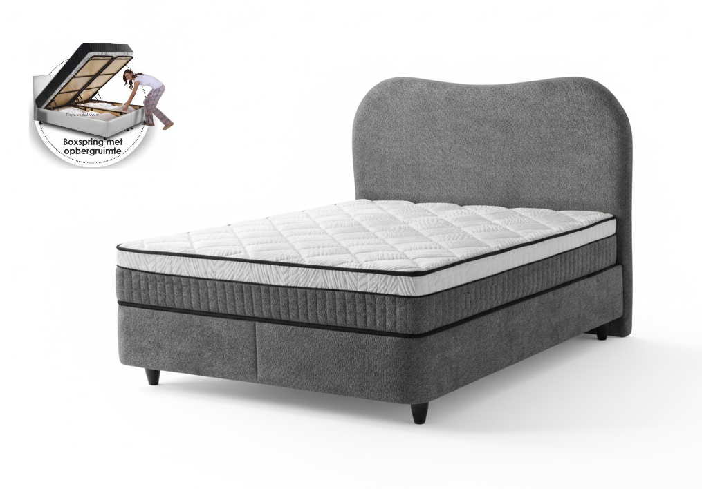 Boxspring Olivia opbergbed teddy stof antraciet kleur