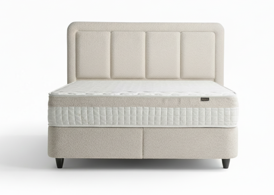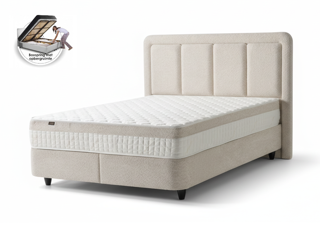 Boxspring Vesper Opbergbed – Luxe Zachte Stof, Licht Crème kleur