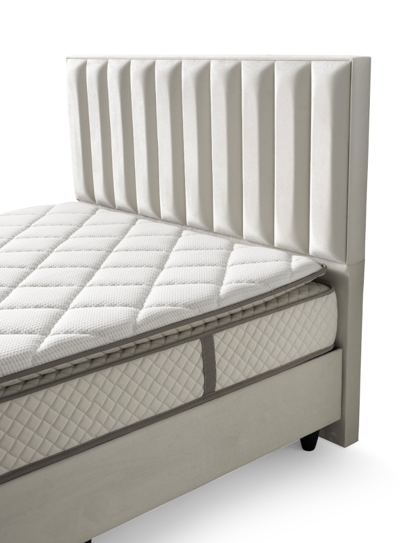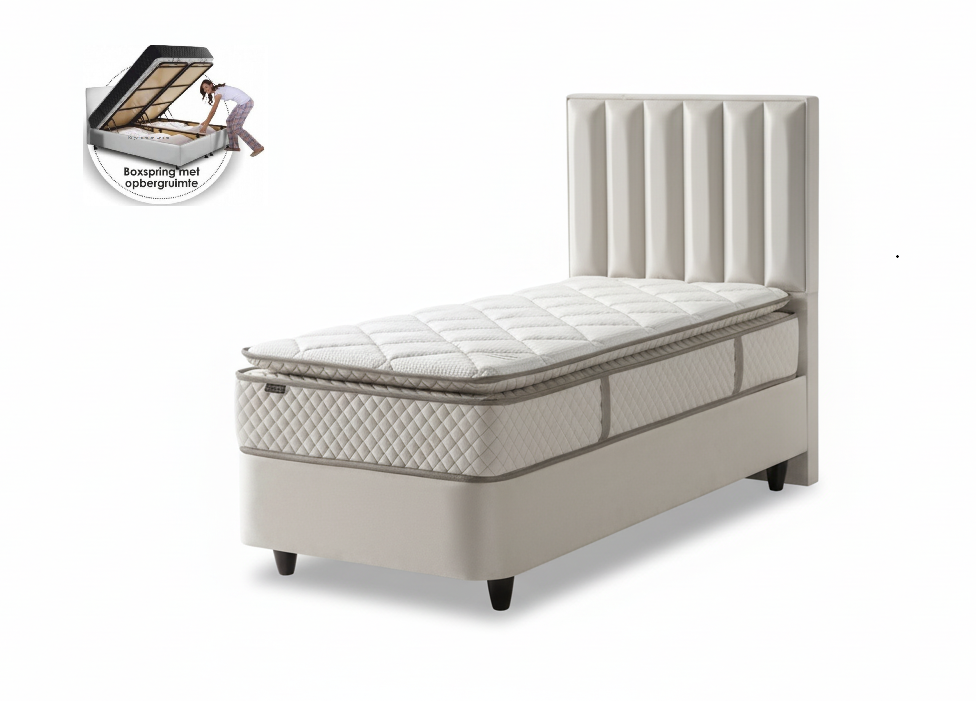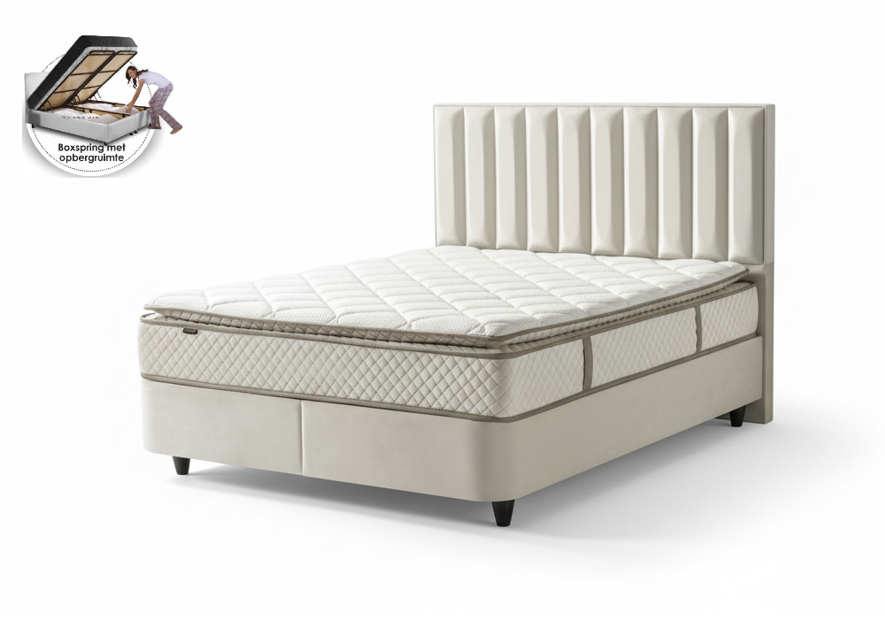 Boxspring Leo opbergbed set Velvet ecru-taupe kleuren.