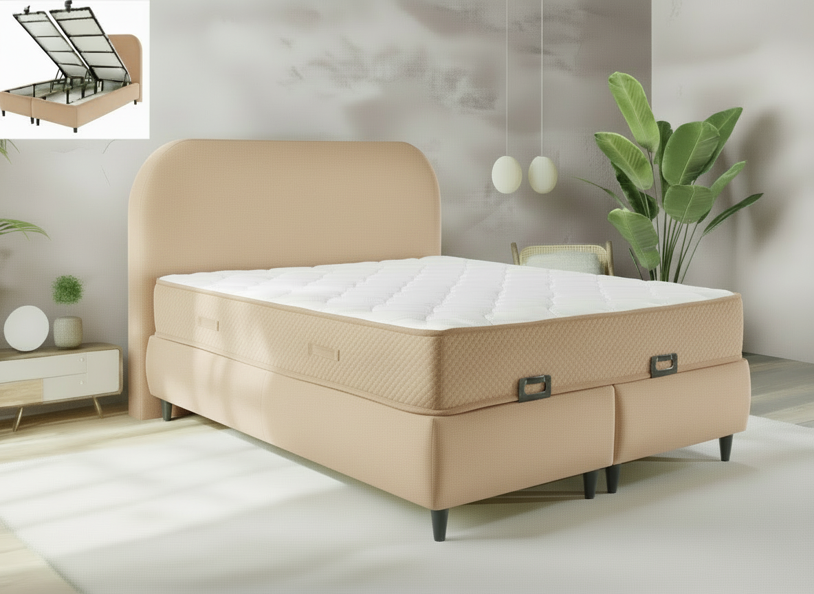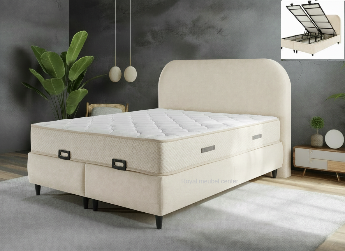 • 2 x Onderboxen met opbergruimte, luxe meubelstof meegestoffeerd. ( 90cm  1 x onderbox)