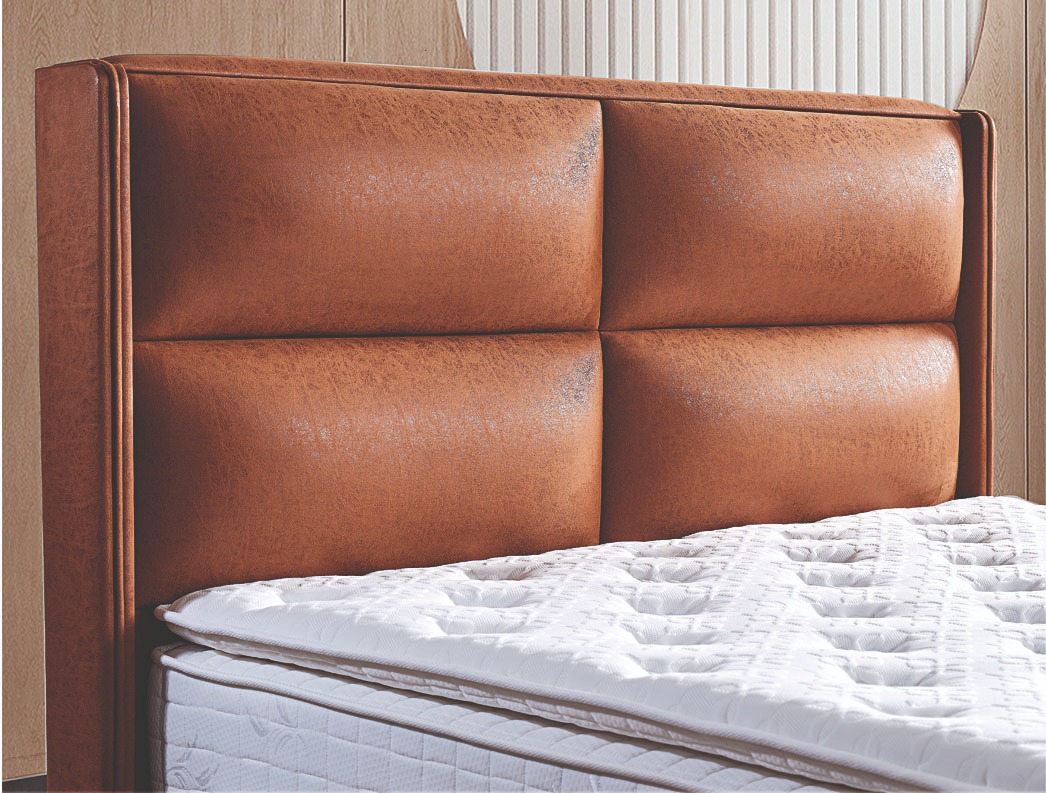 Het opbergbed Moon heeft een strakke uitstraling door het luxe hoofdbord die opgedeeld is in 4 blokken.