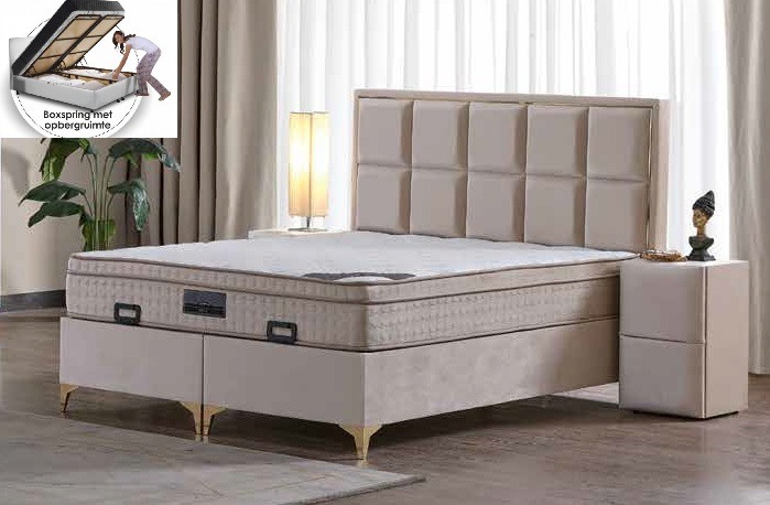 Boxspring block line opbergbed complete set 0 Boxspring block line opbergbed 0 Stof kleuren 2 Royal meubel boxspring met storage 2 3 0