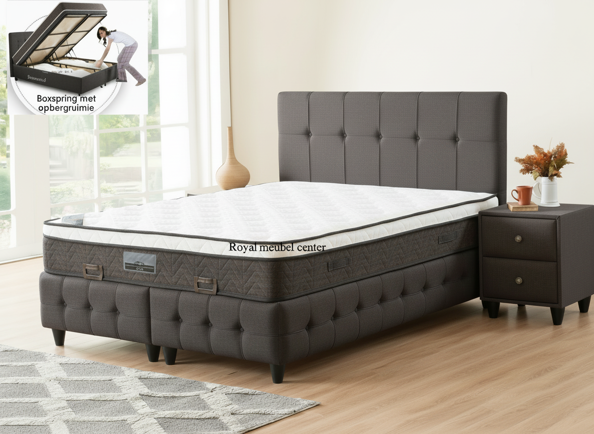 Boxspring paleis opbergbed cream 0 Boxspring paleis opbergbed antraciet 0 Boxspring paleis opbergbed grijs 0 Boxspring paleis opbergbed complete set 0 Boxspring paleis opbergbed 0 Stof kleuren 4 Royal meubel boxspring met storage 2 2