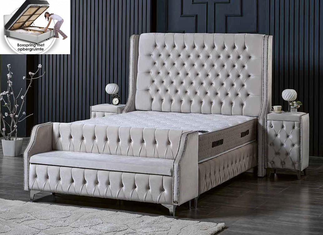 Boxspring valentino opbergbed  0 Boxspring valentino opbergbed 1 Stof kleuren plein velvet skay 43 Royal meubel boxspring met storage 2 17 Nachtkast 0 Boxspring valentino opbergbed complete set 0