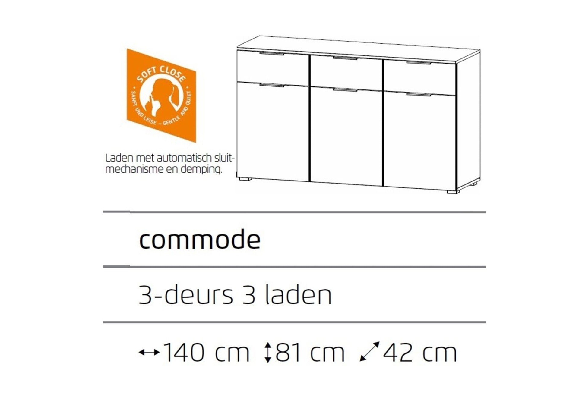 Commode-Dressoir Alaska Grijs metallic 140 cm